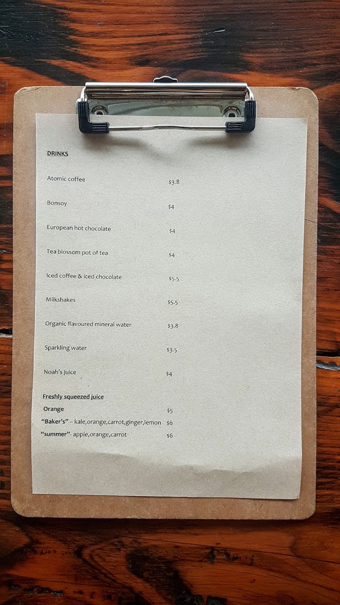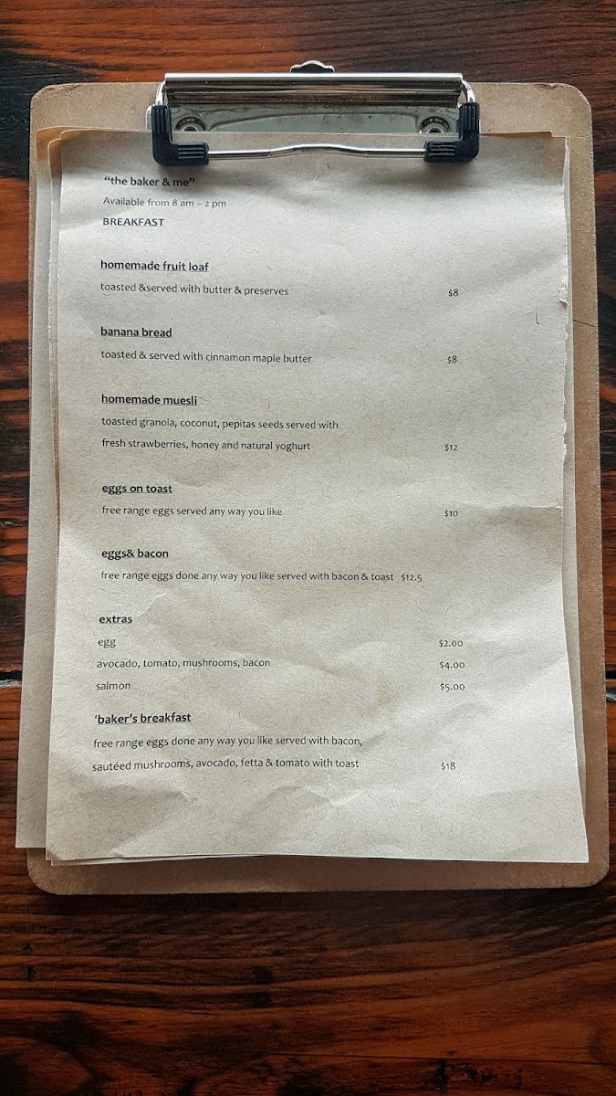 The Baker & Me Menu